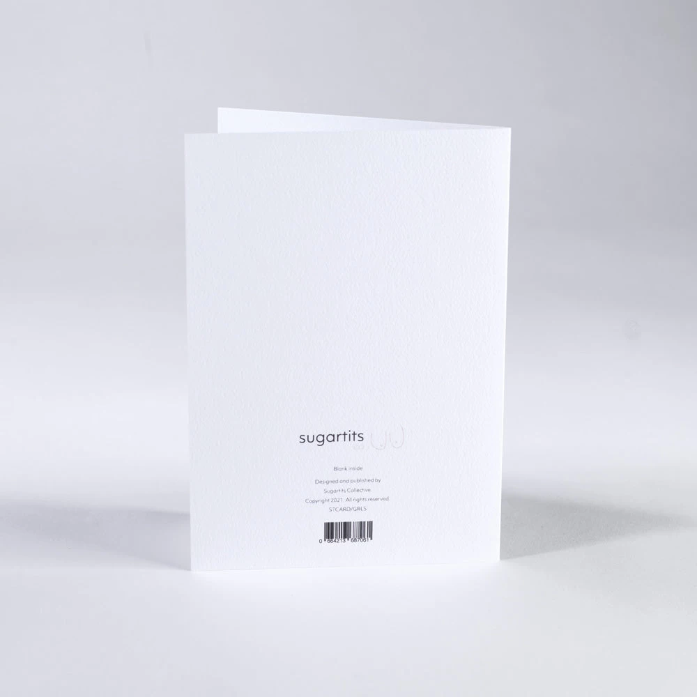 Designed in house by Sugartits & Co, these gorgeous heavy weight Gesso white cards come with quotes suited to everyday life. Sure to bring a smile to anyones face. Make sure you have a few of these in your stationery cupboard ready for any occasion. Comes with 120gsm Italian laid, cream envelope. Blank inside. 150x105mm.