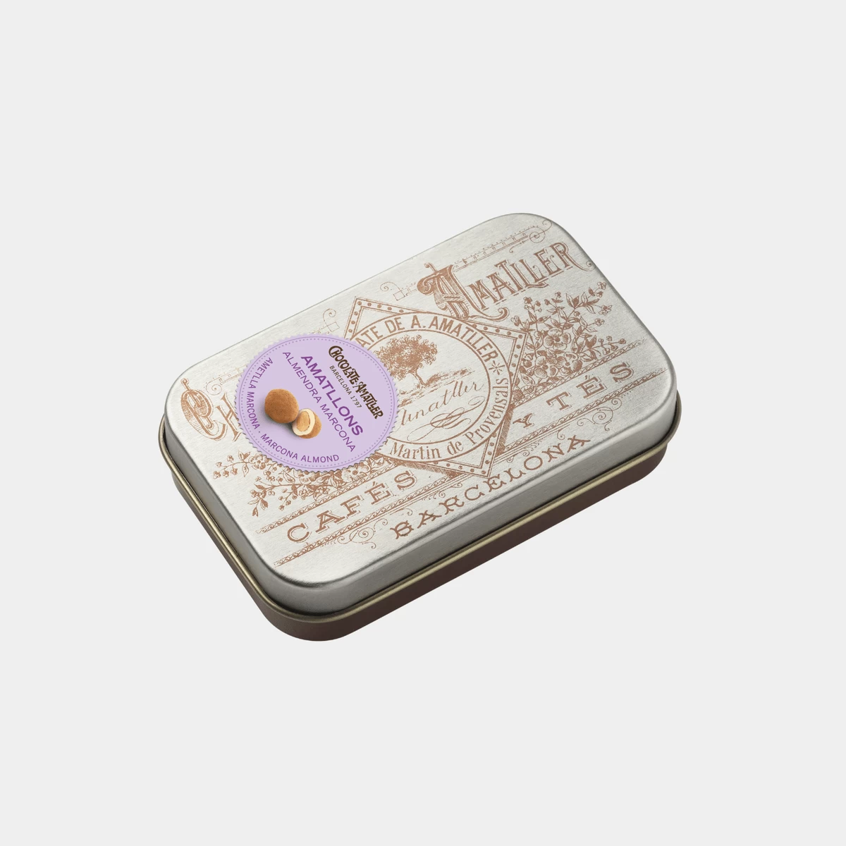 Delicious thin leaves of 70% cocoa chocolate with a touch of Mediterranean salt. They come in lovely tins decorated with a range of beautiful original art nouveau posters created for the supplier, Chocolate Amatller, in the early 1900s. Perfect for gifting and stocking fillers. Smooth bittersweet dark chocolate spiked with bursts of savoury intensity. These are a guilty pleasure to enjoy on their own or with an espresso.
