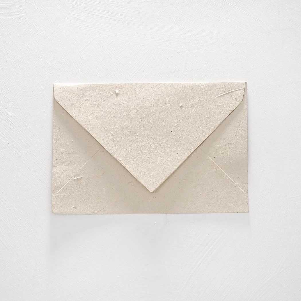 Natural toned and textured handmade envelope is the height of delicacy and sophistication. This is the perfect material to make a card your loved one will remember. Processed and made by hand on wooden deckles, this paper is an entirely natural product, with irregularities and flaws which only add to the charm of the paper.