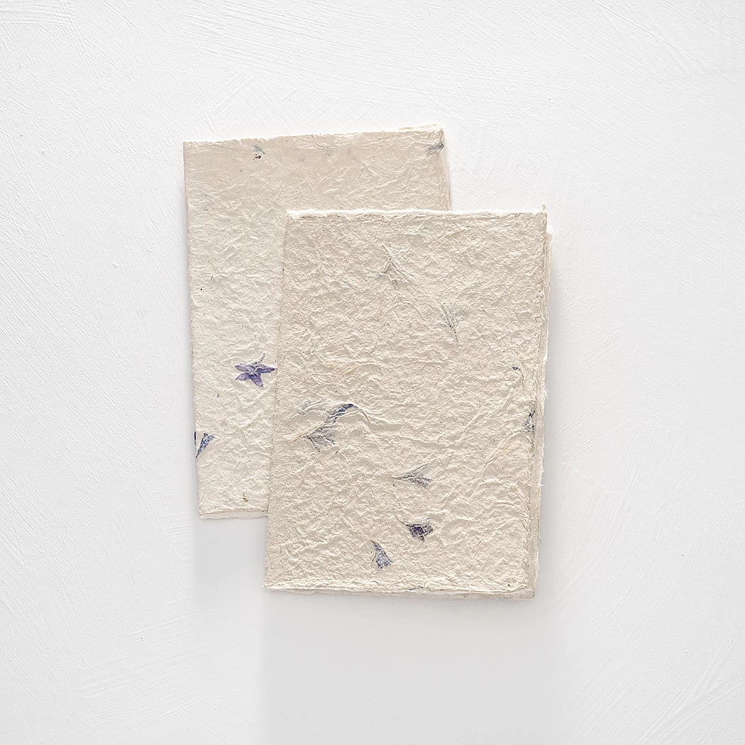Natural toned and textured handmade folded card is the height of delicacy and sophistication. With real pressed Cornflower Petals blossoms throughout the card, this is the perfect material to make a card your loved one will remember. Processed and made by hand on wooden deckles, this paper is an entirely natural product, with irregularities and flaws which only add to the charm of the paper.