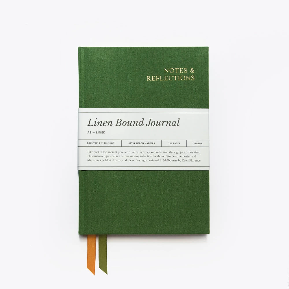 Take part in the ancient practice of self-discovery and reflection through journal writing. This luxurious A5 linen bound journal is a canvas waiting to be filled with your fondest memories and adventures, wildest dreams and ideas. Lovingly designed in Melbourne by Zetta Florence.
