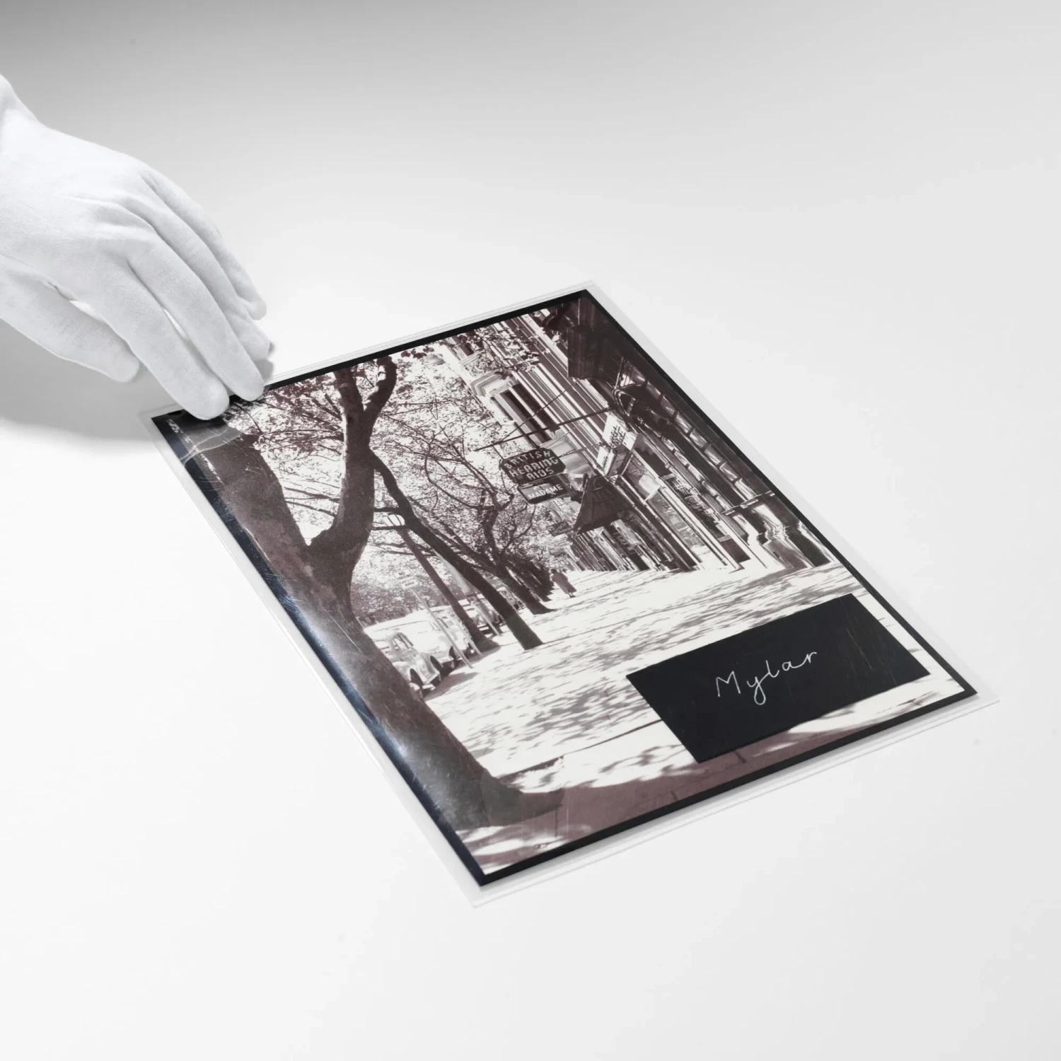 Zetta Florence’s Mylar Enclosures are unparalleled in the archival industry in both durability and crystal clear transparency. This premium range of sleeves boasts 500+ year archival qualities while presenting your documents and images in a sleek and polished way. The Mylar is made from conservation quality Polyethylene Terephthalate (PET) and passes the Photo Activity Test (PAT). Approved by Library of Congress for conservation preservation and display, they are pH neutral, 100% free of plasticizers, chemically inert and free of stearate acids. The thickness is 100um to ensure robust display. The sleeves are ideal for protecting and displaying your documents, whether it’s art, business documents, or photos. Best suited in conjunction with our Presentation and Archival boxes including our Lipped Clamshell, and Safekeeper ranges.