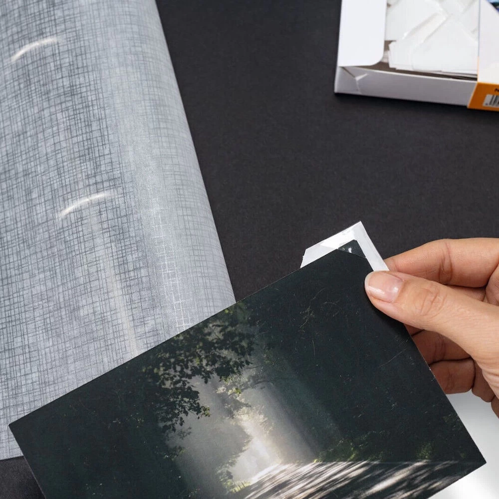 Self-adhesive photo corners, extra-large, for mounting large photos, philatelic sets or exhibits.
