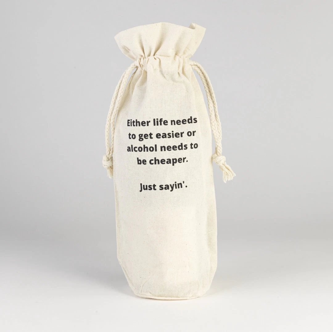 These 100% cotton wine bags strike a balance between class and sass, with quotes ranging from wholesome to slightly off colour! An easy, affordable addition your loved ones are sure to like, whether you are wrapping wine bottles as presents or carrying your drinks to a dinner function in style. It is recommended to wash in cold water, delicate cycle or hand wash.